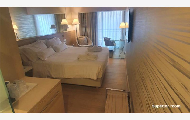 Hotel raspolaže sa 240 soba. Sve sobe imaju kupatilo, fen za kosu, Wi-Fi (besplatno), SAT TV, klima uređaj (besplatno), sef (besplatno), mini-bar (uz doplatu), telefon, balkon ili terasu. Našim gostima su na raspolaganju sobe tipa superior koje mogu biti sa pogledom na okolne zgrade, sa pogledom na grad i sa direktnim pogledom na more. Sve superior sobe su površine od 20-25 m², namenjene za smeštaj 2-3 osobe i sadrže dva standard ležaja i sofa ležaj za potrebe treće osobe. Sve sobe u hotelu su dvokrevetne po svojoj osnovnoj strukturi, dok ostali ležajevi mogu biti pomoćni. Bebi krevetac je gostima na raspolaganju uz doplatu 7 € po danu (plaćanje na licu mesta).