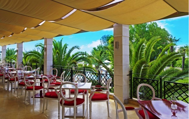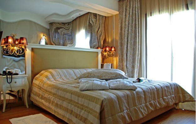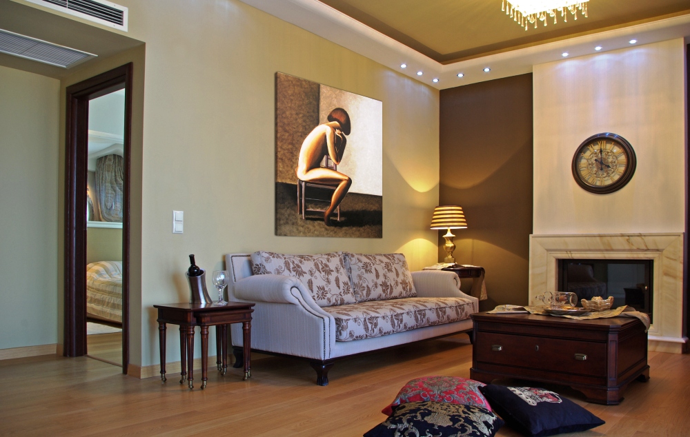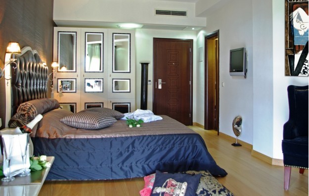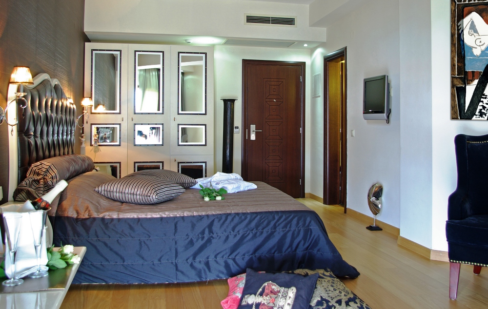 Junior suite-Jedinstveno opremljeni Junior apartmani površine 20 m2 sastoje se od jednog master okruglog bračnog kreveta i kamina, kupatila sa luksuznim toaletnim priborom, kao i predivno prostranog i potpuno opremljenog balkona sa pogledom na more ili bazen.