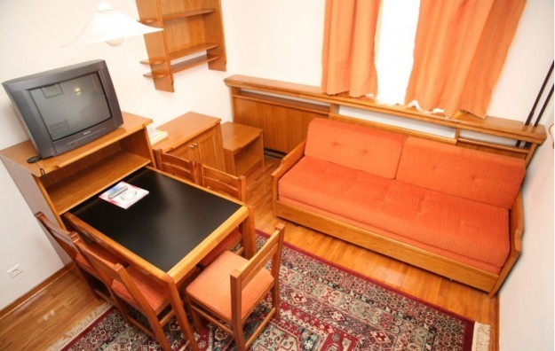 Sadržaj apartmana: LCD televizori sa kablovskim prijemom, telefon, krevetac (na upit), kupatilo (tuš), fen, kompletno opremljena kuhinja (mini frižider, ugradna ploča sa dve ringle i kvalitetan pribor za individualno pripremanje i serviranje obroka). Novina su i sobe / apartmani koji ne poseduju kuhinje u svom sastavu.