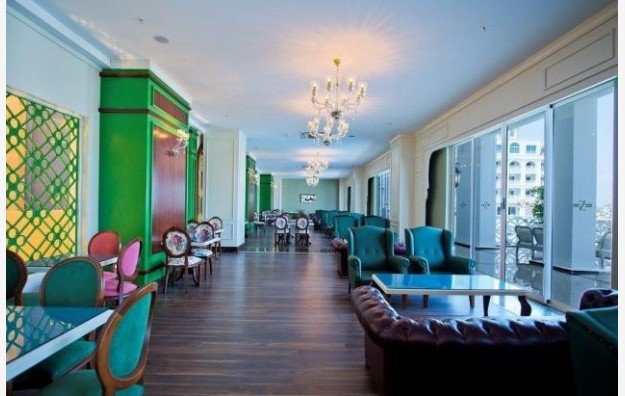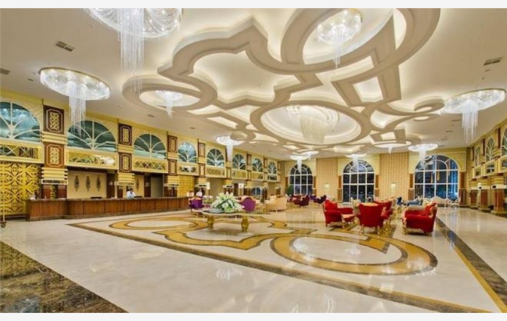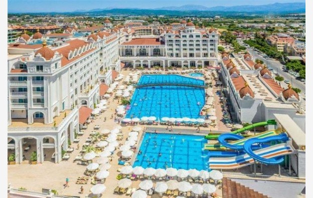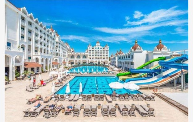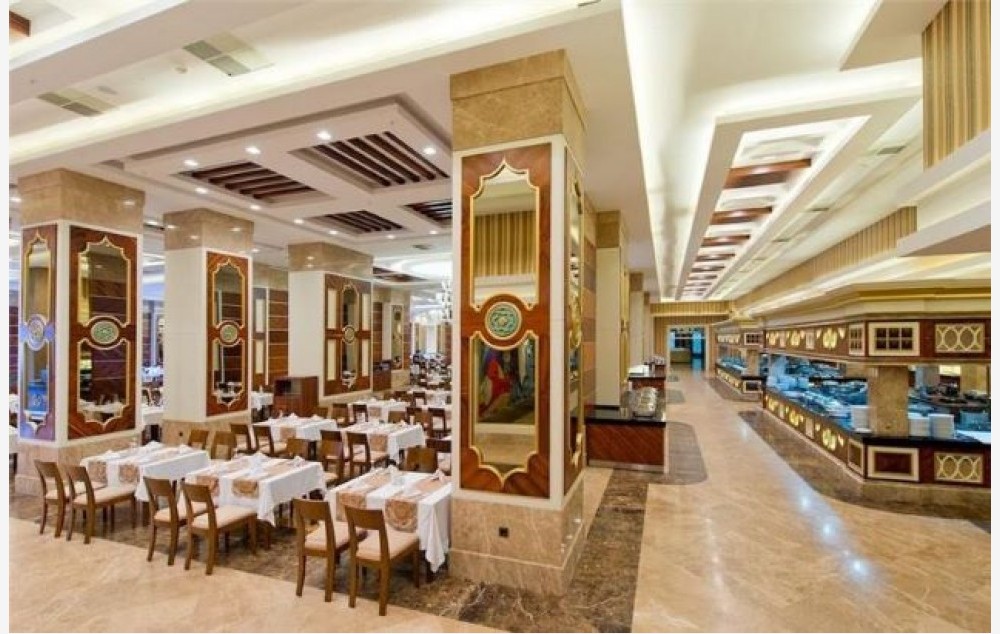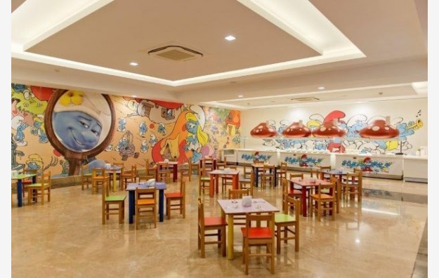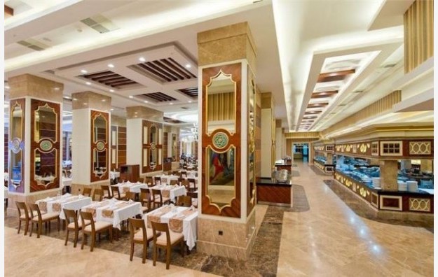 Hotelski sadržaj: Recepcija, glavni restoran, 4 a la carte restorana, 5 barova, disco club (pića uz doplatu), poslastičarnica, otvoreni bazen za odrasle, bazen sa 4 tobogana, otvoreni bazen za decu, SPA centar (teretana, sauna, hamam i parno kupatilo – besplatno), odbojka na plaži, aquabik, aerobik, vaterpolo, stoni tenis, pikado, dnevna i večernja animaciju za odrasle i decu, tematske večeri, mini klub (4-12 god), mini disco, igralište za decu bioskop. Wifi je besplatan u celom hotelu.