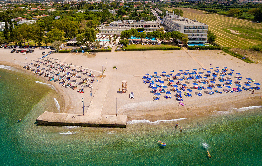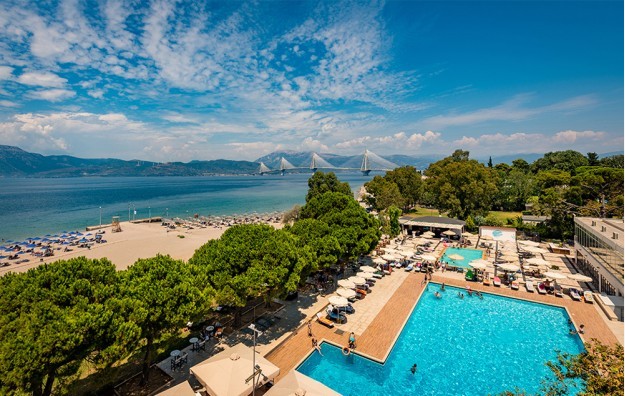 LOKACIJA: nalazi se nedaleko od Patre, okružen kristalno čistom vodom istoimenog zaliva. Raspolaže prostranim, komfornim sobama sa čijih se balkona i terasa pruža očaravajući panoramski pogled.