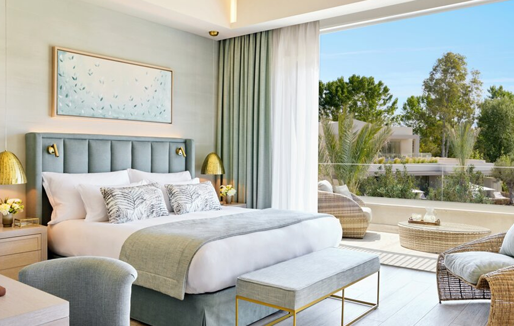 One Bedroom Suite Private Garden Pool View-Potpuno renovirani, luksuzni apartmani, svaki u potpunosti prilagođen bebama, deci i njihovim roditeljima. Prostranog, savremenog dizajna sa odvojenim dnevnim i spavaćim sobama za najudobniji boravak. Svaki apartman nudi sopstvenu prostranu privatnu baštu sa nameštajem, ležaljkama i svime što vaš boravak čini posebnim, uključujući luksuzne krevete, izbor jastuka i izbor kompletnog asortimana vrhunske opreme i osnovnih potrepština za naše male goste. Prozori od poda do plafona preplavljuju prostrane sobe svetlom i spektakularnim pogledom. Pored toga, kupatilo je opremljeno kišnim tušem i kadom sa luksuznim toaletnim priborom Anne Semonin. Cca 55 m2. Dodatne pogodnosti: drveni krevetić, bade mantili i papuče, posteljina i vešalice, BabiBjorn Relak, grejač za flaše i sterilizator, prostirka za previjanje, sedište za kupatilo, mašina za belu buku, noćno svetlo, mreža protiv komaraca, noša i VC daska, dostupni u sobi, na zahtev ili na licu mesta, zavisno od raspoloživosti.
