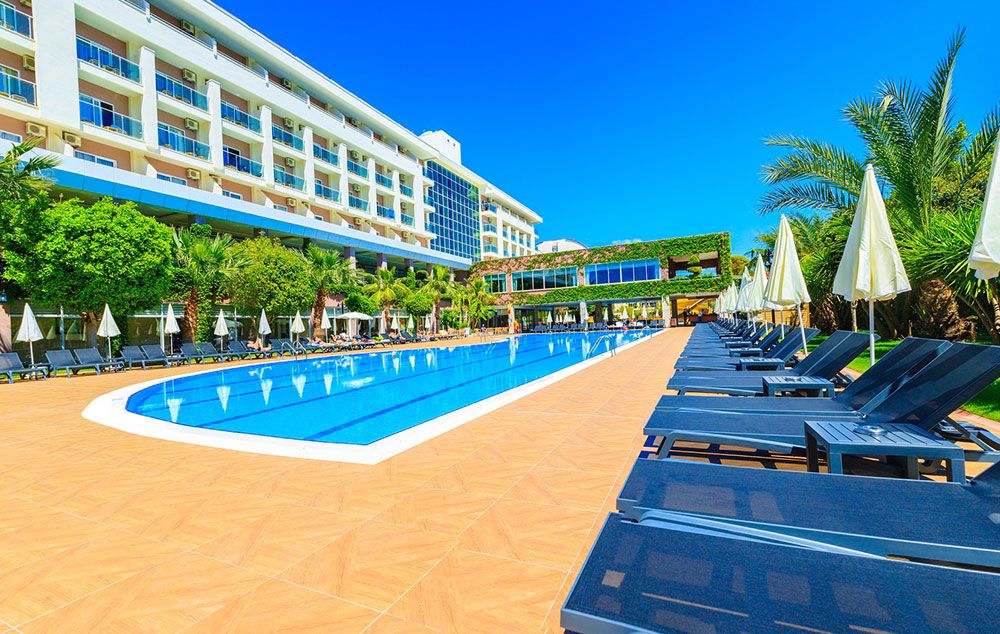 Hotelski sadržaj: Recepcija, glavni restoran, a la carte restoran (uz doplatu i rezervaciju), 6 bara, 4 bazena od kojih je jedan za decu i jedan sa toboganima, mini klub za decu 4-12 god, mini disco, igralište za decu, animacija za decu i odrasle, fitness, hamam, sauna (uz doplatu), wi fi (besplatno u lobiju, brzi uz doplatu).