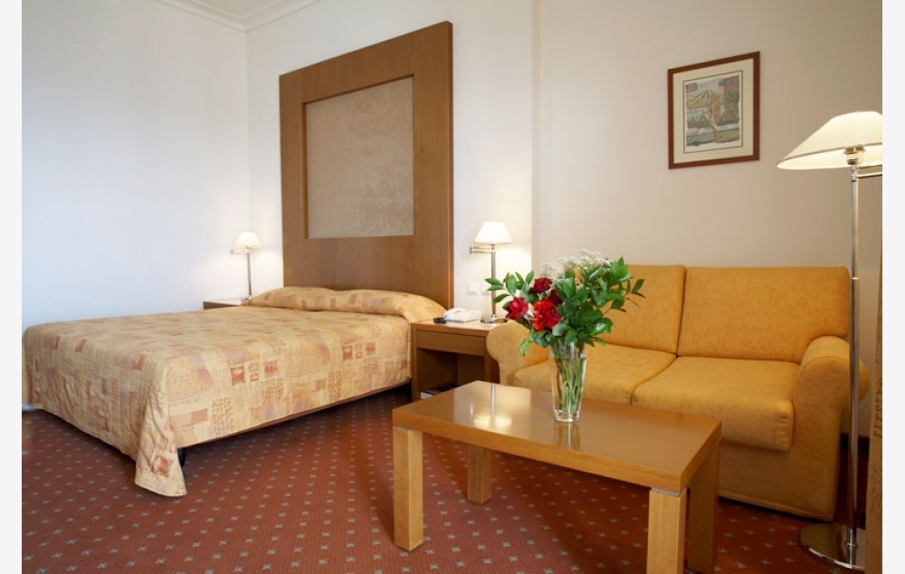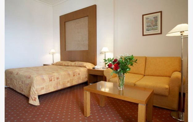 Superior room garden view - oko 26-29m2 sa pogledom na baštu, opremenja je sa francuskim ili dva singl ležaja i sofom. Namenjena je za 2-4 osobe.