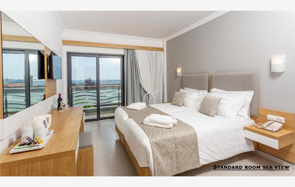 Gostima su na raspolaganju sobe tipa: standard pogled grad (20m2) i standard pogled more (20m2). Standardne sobe su locirane na 1.,2.,3.,4. ili 6. spratu te mogu da prime maksimum dve osobe. Sve sobe sadrže kupatilo sa tuš kabinom, fen za kosu, SatTV, wi-fi internet, individualni klima uređaj, sef (uz doplatu), mini bar (uz doplatu), set za kafu i čaj, balkon ili terasu. Sve standardne sobe sadrže francuski ležaj ili dva standardna ležaja.