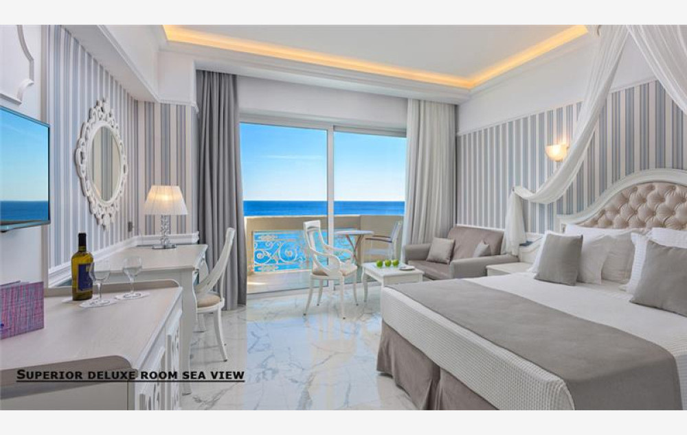 Deluxe sobe pogled more površine oko 27m², namenjene za smeštaj 2-3 osobe, smeštene su u manjim zgradama u kompleksu, sadrže dva standardna ležaja koji mogu biti spojeni i za potrebe treće osobe ležaj koji može biti pomoćni.