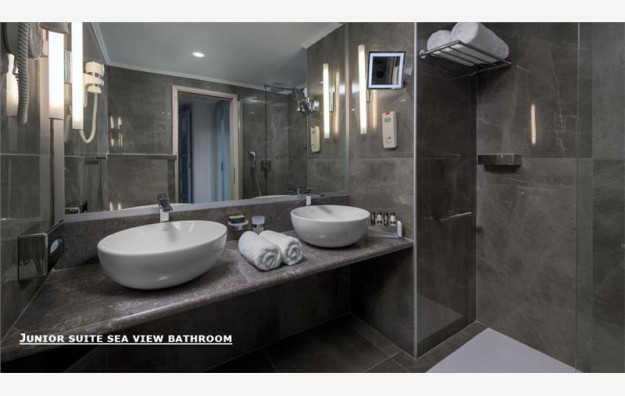 Junior svite pogled more locirane su u glavnoj zgradi, površine su oko 45m², namenjene za smeštaj 2-3 osobe. Sadrže odvojenu dnevnu i spavaću sobu. Dnevna soba je opremljena sofom na razvlačenje, a spavaća soba sa dva ležaja koji mogu biti spojeni.