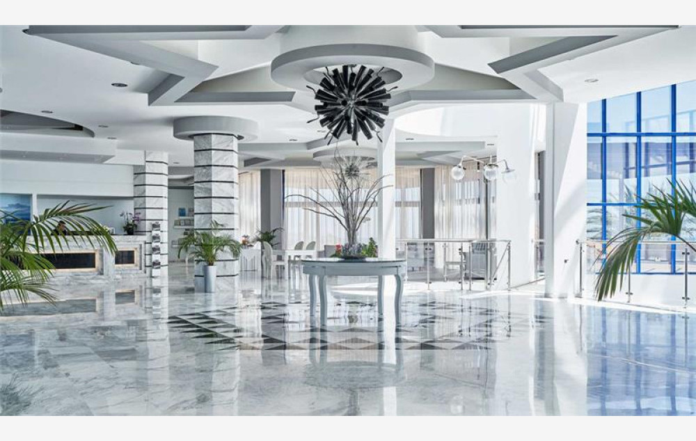 Recepcija 24h, Wi-Fi (besplatno), 4 restorana, 3 bara (izdvajamo Diogenis bar na plaži), poslastičarnica, kutak sa aperitivima, razne animacije tokom dana i večeri, 5 bazena od čega je jedan unutrašnji i dečiji bazen sa toboganima, teniski tereni, košarka, vaterpolo, odbojka na pesku, mini golf, spa centar (sauna, hamam, unutrašnji bazen, đakuzi), fitnes centar i teretana za 16+, amfiteatar kapaciteta 400 osoba, mini klub za decu od 4-12 godina, kao i junior klub za tinejdzere od 13-17 godina, sportovi na vodi (uz doplatu), parking (besplatno).