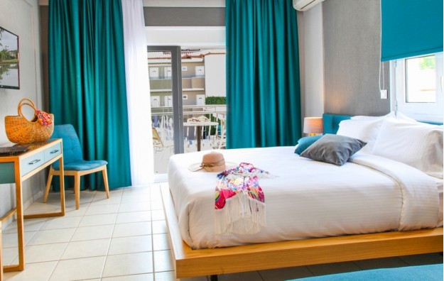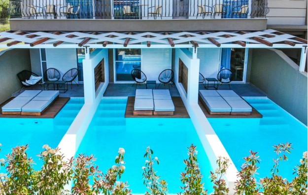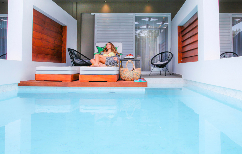 2 Bedroom Suite Pool View-Veoma su prostrane (60 kvadratnih metara) i podeljene su vratima u 2 različite sobe za više privatnosti. Glavna soba je opremljena bračnim bračnim krevetom, satelitskom TV-om od 40” i klima uređajem, dok druga soba ima veoma udoban dnevni boravak sa sofom koja se pretvara u krevet, drugi satelitski LCD TV 40” i klimu za više autonomije. Svaka spavaća soba ima jedan prostrani namešteni trem sa pogledom na hotelski bazen i potpuno su opremljene najsavremenijim multimedijalnim sistemom (kućni bioskop, besplatan privatni pristup internetu, TV se povezuje sa mobilnim telefonom itd.).