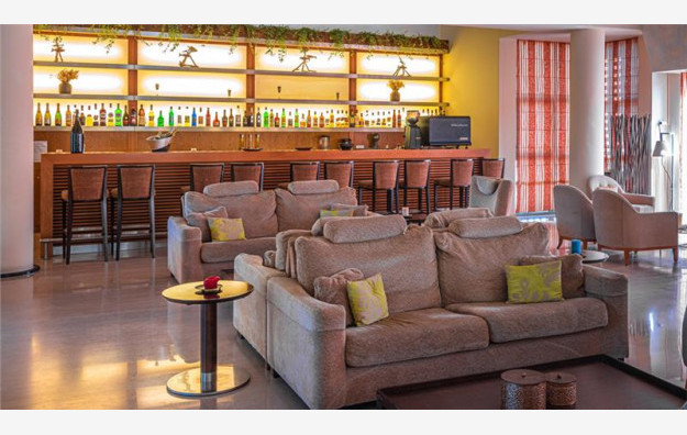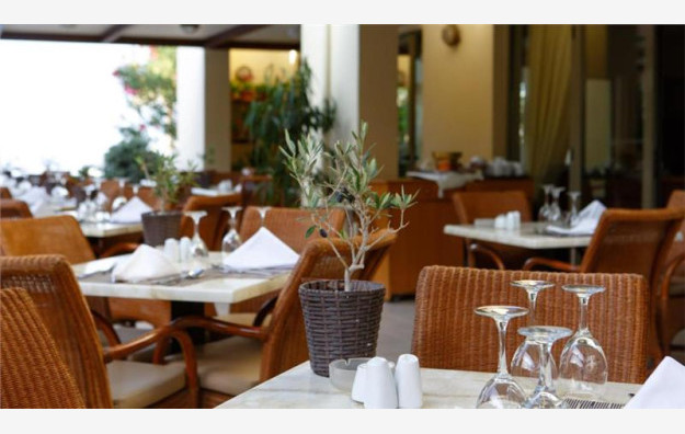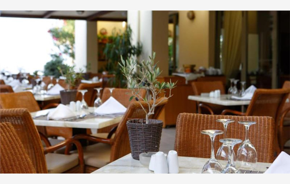 Recepcija, glavni restoran sa grčkom i internacionalnom kuhinjom, Azzuro a la carte restoran na plaži koji služi mediteransku kuhinju (uz doplatu), Tv kutak, glavni bar, bar kod bazena pored koga se održavaju tematske večeri, bazen sa ležaljkama i suncobranima koji su besplatni, terasa za sunčanje, teretana, servis za pranje (uz doplatu), Wi-Fi u javnim delovima hotela (besplatno), peškiri za bazen (besplatno), parking.