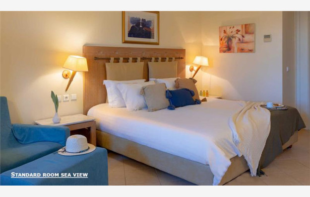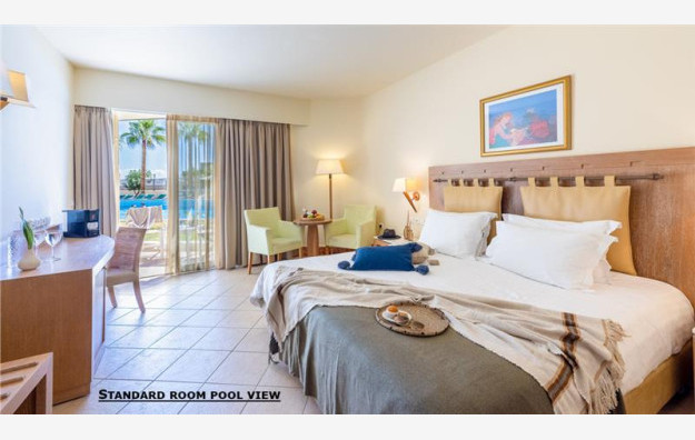 Hotel ima ukupno 51 smeštajnu jedinicu. Oba tipa sobe u našoj, ponudi standardna soba pogled bazen i standardna soba pogled more primaju maksimalno troje odraslih ili dvoje odraslih i dete, kvadrature 28m2. Sve sobe su dvokrevetne po svojoj osnovnoj strukturi, sastoje se od francuskog ili dva singl ležaja, dok ležaj za treću osobu može biti pomoćni. Sve sobe sadrže klima uređaj (besplatno), kupatilo, aparat za čaj/kafu, fen, telefon, minibar (uz doplatu), sef (uz doplatu), radio, bademantil i papuče, Sat TV, balkon/terasu.