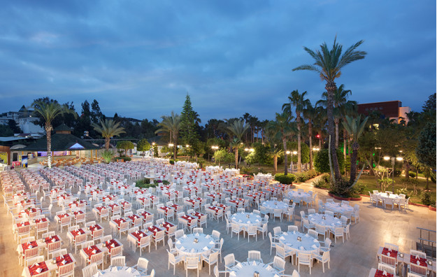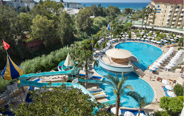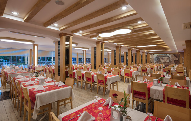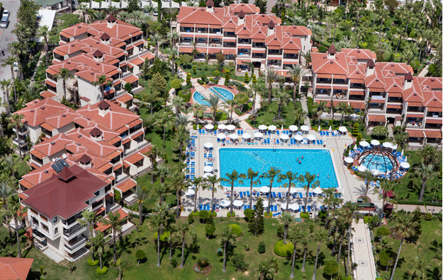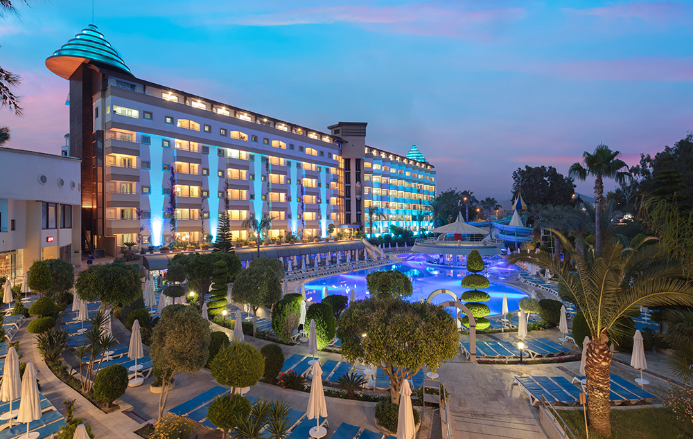 Hotelski sadržaj: Recepcija, lobi, lift, glavni restoran, 4 a la carte restorana (italijanski, riblji, turski i meksički), 7 barova, spoljašnji i unutrašnji bazeni za decu i odrasle, bazen sa toboganima, mini klub (za decu od 4-10 godina), igraonica, odbojka na pesku, košarka, fitness centar, stoni tenis, aqua gym, mini-fudbal, mini golf, tenis (uz doplatu najam opreme i osvetljene terena), pikado, bilijar (uz doplatu), aerobic, zumba, večernja animacija, disko, sauna, tursko kupatilo, spa (uz doplatu), mini šoping centar, wi fi (besplatan u zajedničkim prostorijama).