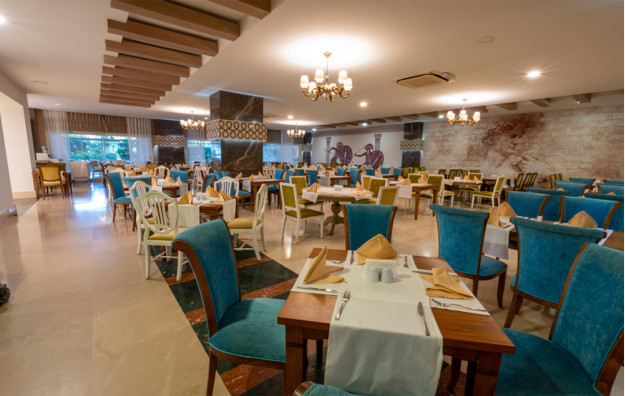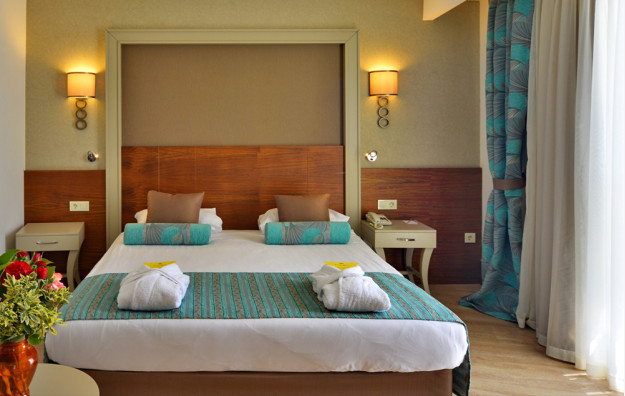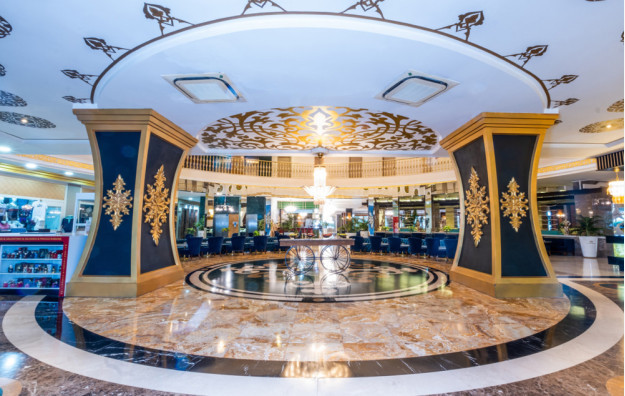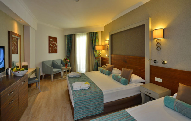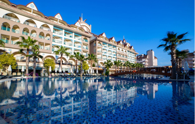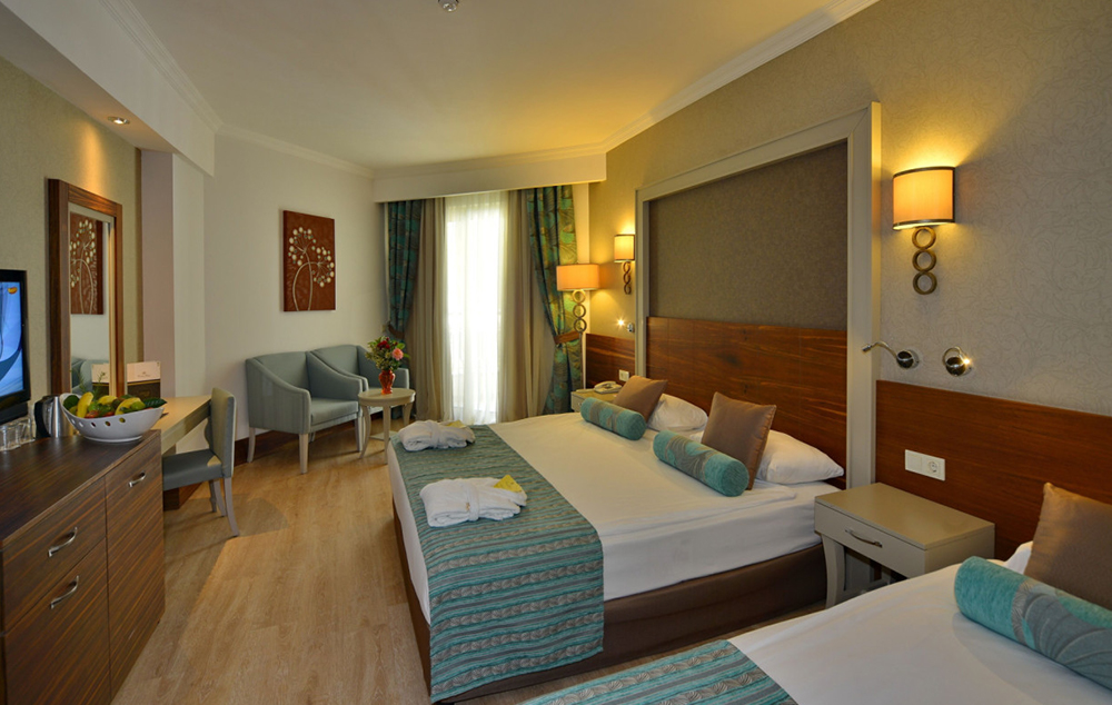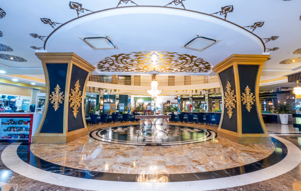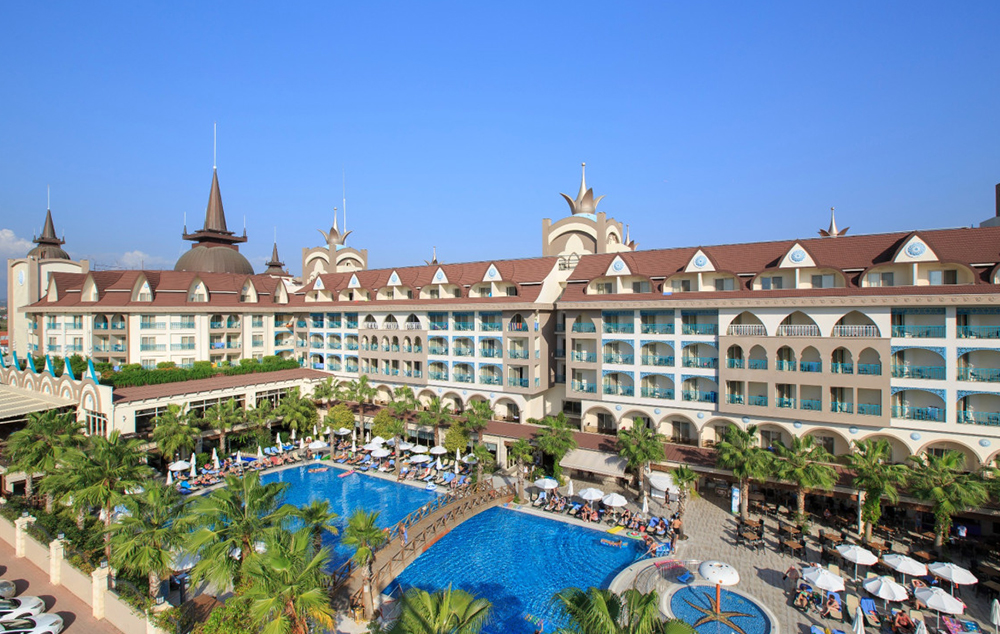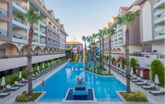Hotelski sadržaj: Recepcija, glavni restoran, 2 a la carte restorana, 5 barova, poslastičarnica, 2 bazena, 4 tobogana, 2 dečija bazena, dečije igralište, mini klub (4-12 god), mini disko, SPA centar (hamam i sauna-besplatno), dnevna i večernja animacija, teretana, aerobik, odbojka na plaži, boćanje, stoni tenis. Wifi je besplatan u celom objektu.