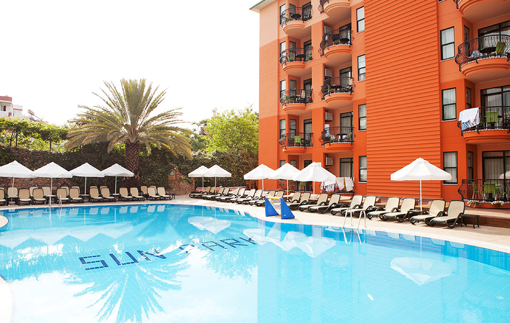 Hotelski sadržaj: Recepcija, lift, glavni restoran, a la carte restoran, bazen za odrasle, bazen za decu, akva park sa toboganima za decu i odrasle, teretana, hamam, masaže, stoni tenis, bilijar, mini golf, odbojka na pesku, dečija igraonica, animacija, parking.