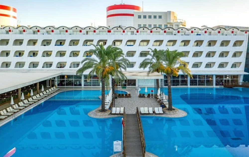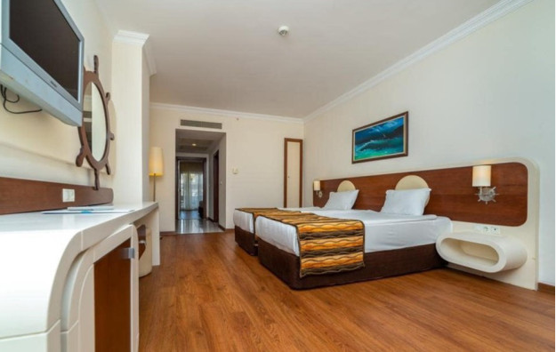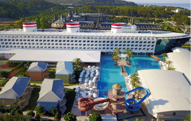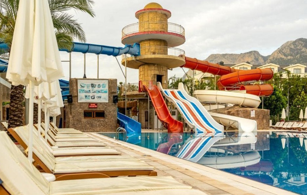 Hotelski sadržaj: Glavni restoran, a la carte restoran, 6 barova, otvoreni i zatvoreni bazeni za odrasle i decu, 4 tobogana, 2 teniska terena, stoni tenis, odbojka na plaži, tursko kupatilo, sauna, fitness centar, dnevna i večernja animacija, mini klub (4-12 godina)