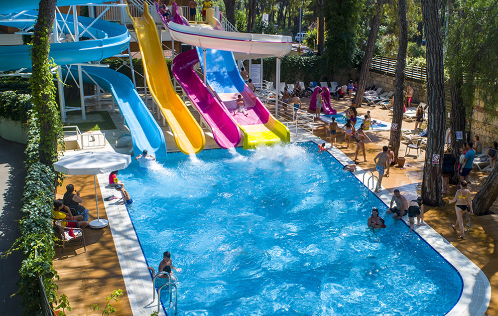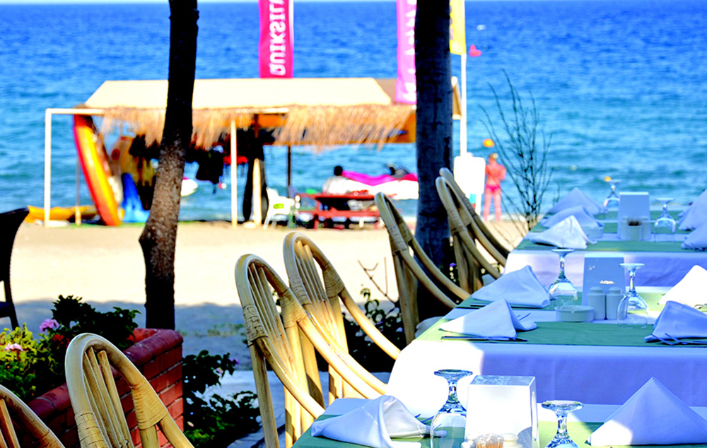 Hotelski sadržaj: Recepcija, glavni restoran, 3 bara, disko klub, otvoreni bazeni za odrasle i decu, aquapark sa 4 tobogana, fitnes centar, tursko kupatilo, sauna, dva teniska terena, odbojka na plaži, stoni tenis, pikado, boćanje, gimnastika, zabavni programi tokom dana, takmičenja na plaži i pored bazena, dnevni i večernji šou programi sa profesionalnim timom, mini klub (4-12 godina), junior klub (13-16 godina), dečije igralište, mini disco, wifi (besplatno u lobiju).