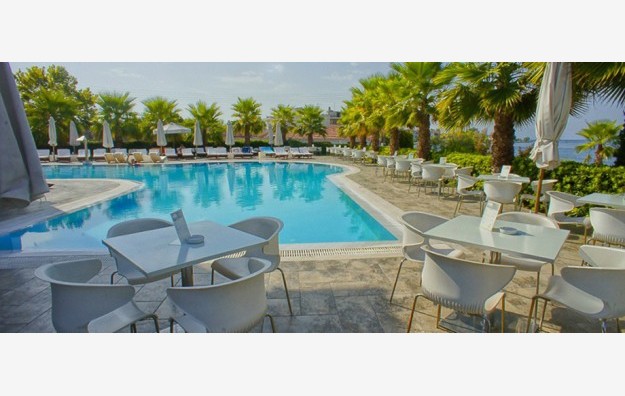 SADRŽAJ: Recepcija, lobi, wifi, parking, usluga pranja veša, hemijsko čišćenje, usluga peglanja, restoran, barovi, taverna, otvoreni bazen, zatvoreni bazen, peškiri za plažu, mini klub, TV sala, teretana, spa centar, hamam, sauna, masaže, salon lepote, sala za konferencije...