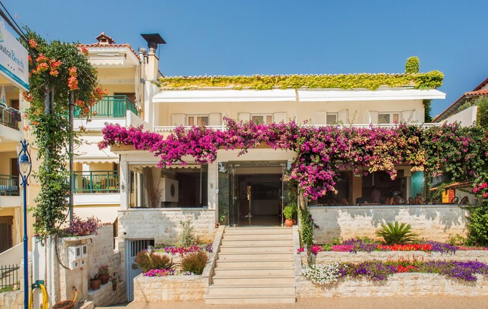 LOKACIJA: Loutra beach je mali porodični hotel koji se nalazi u mestu Agia Paraskevi, na samo 50 m od mora idealan za opušten i miran odmor. Nalazi se 5km od Nea Skionija, 10 km od Haniotija i Pefkohorija