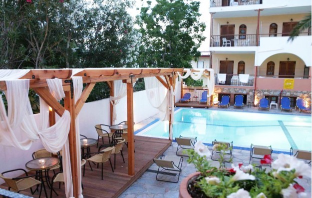 CALYPSO 2* / HANIOTI-LOKACIJA: nalazi se u centru Haniotija, na stotinak metara od centralnog trga i na oko dvestaosamdeset metara od plaže.SADRZAJ: bazen na otvorenom, bar kraj bazena, snek bar, velika terasa sa ležaljkama i suncobranima, restoran, večernja zabava, „happy hour“ u glavnom baru svako veče, recepcija, lobi sa velikim SAT TV-om, pikado, menjačnica, minigolf... USLUGA: Usluga u hotelu je noćenje s doručkom (na bazi švedskog stola, samoposluživanje)SOBE: Sve sobe imaju A/C,balkon/terasa,kupatilo,mini-bar,TV, Wi-fi TIPOVI SOBA:ECO room-16 m2 nalazi se u donjem prizemlju, sa terasama bez pogleda, imaju bračni ili dva odvojena kreveta i pomoćni ležaj.Single room-13 m2 manje veličine, obično duplo za jednokratnu upotrebu.Standard room-16-26 m2 koji se nalaze na nivou recepcije ili 1. sprata, sa pogledom na okolne zgrade, imaju bračni ili dva odvojena kreveta ili bračni krevet i još jedan krevet za jednu osobu, u zavisnosti od broja osoba.Standard room for up to 3 persons-26 m2 koji se nalazi na nivou recepcije ili 1. sprata, sa pogledom na okolne zgrade, ima bračni ili dva odvojena kreveta i još jedan krevet za jednu osobU. Standard room top floor-16 m2 nalazi se na poslednjem spratu i ima balkon sa panoramskim pogledom na bazen ili more, ima bračni ili dva odvojena kreveta.
