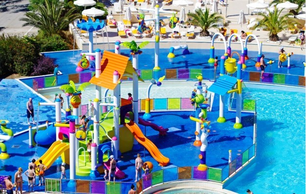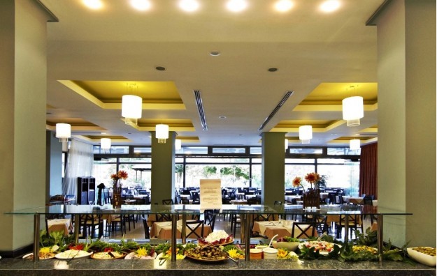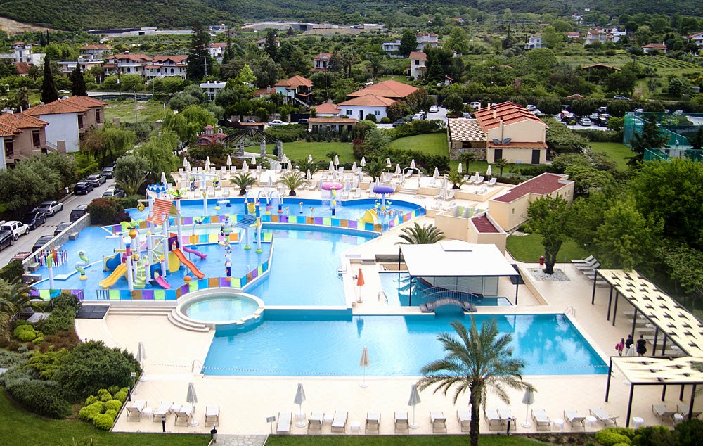 SADRŽAJ: Recepcija, dva bazena, dečiji bazen, zatvoreni bazen, dečije igralište, akva park, mini klub, pozorišne animacije, teniski teren, teren za košarku i odbojku, bilijar, stoni tenis, mini market, restoran i taverna, prodavnica nakita, parking, spa centar u kome se nalazi sauna, hidro masaža, teretana, spoljni bioskop, konferencijska sala, internet kutak...