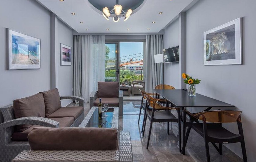 Deluxe studio- Studiji površine 25-30 m², potpuno renovirani posljednjih godina, imaju delimično opremljenu kuhinju s keramičkom pločom za kuvanje, hladnjakom i kuvalom za vodu, veliki TV, bračni ili dva odvojena kreveta i kauče na razvlačenje za 3. i 4. osobu.