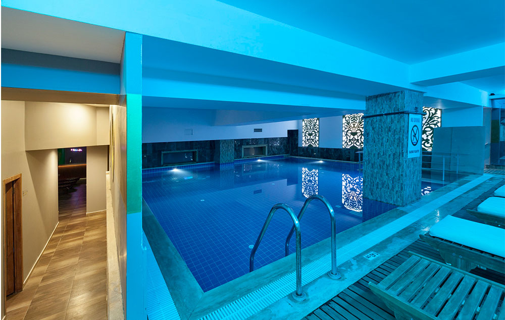 Sadržaj: recepcija, lobi, 2 otvorena bazena (sa delom za decu), 3 bazena za decu sa toboganima, zatvoreni bazen sa delom za decu, glavni restoran, 2 a la carte restorana, 4 bara, spa centar, frizerski salon, stoni tenis, bilijar, pikado, šah, fitnes, club za decu, igralište za decu, disko, mini market, butik, dnevna i večernja animacija, perionica, wifi u holu hotela.