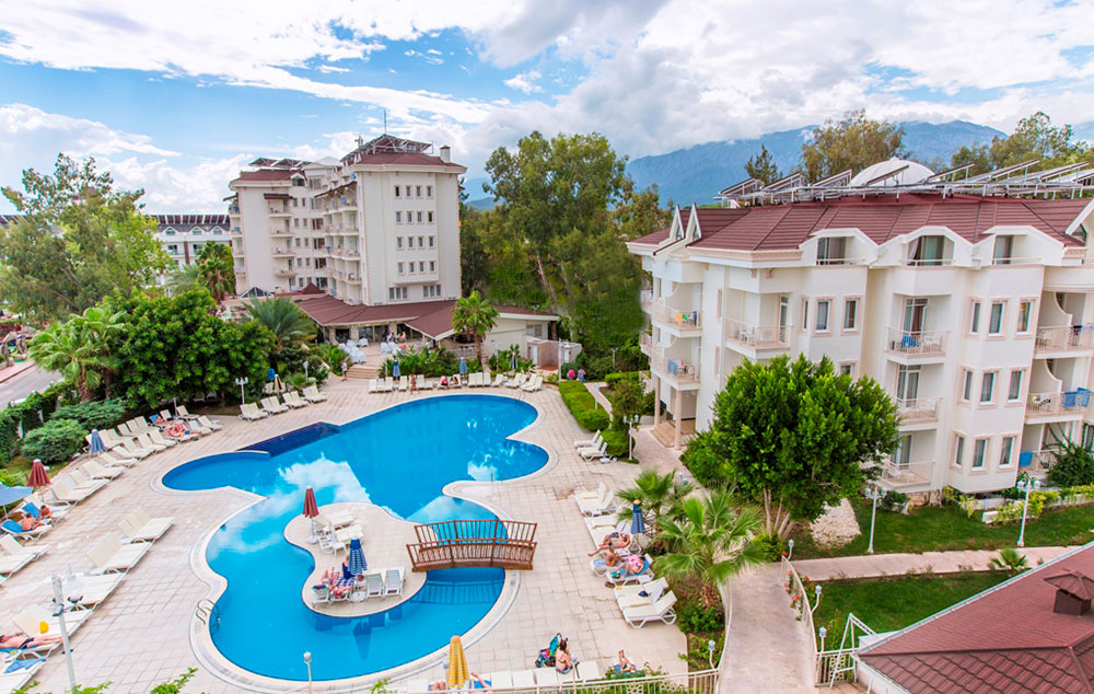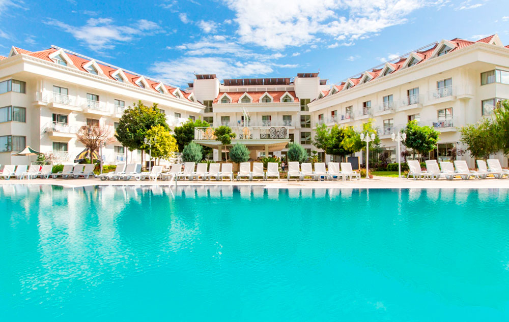 Lokacija: Hotel je udaljen 60 km od aerodroma u Antaliji, a 4 km od grada Kemera, u mestu Kiriš. Hotel zauzima površinu od 17 590 m2.