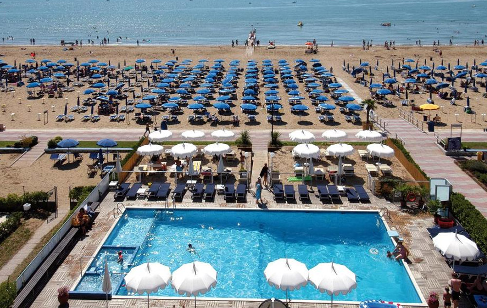 Položaj : Nalazi se u blizini Trga Milano, na sopstvenoj plaži na kojoj su ležaljke i suncobrani uključeni u cenu aranžmana.