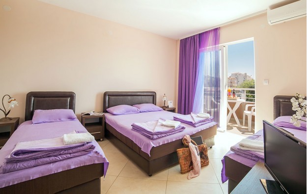 “LARA-S”***kategorizcije sa 3*ima studio apt .strukture1/2,1/3,1/4 ležaja.Svaki poseduje terasu,kupatilo(fen za kosu), frižider,klimu,minikuhinju(komplet opremljenu),Wi-FI,kablovsku TV.U dvorištu objekta nalazi se igraonica za decu -tobogani,ljuljaške,klackalice i drugi rekviziti za dečiju zabavu.Objekat ima lift , recepciju i dvoetažni restoran.