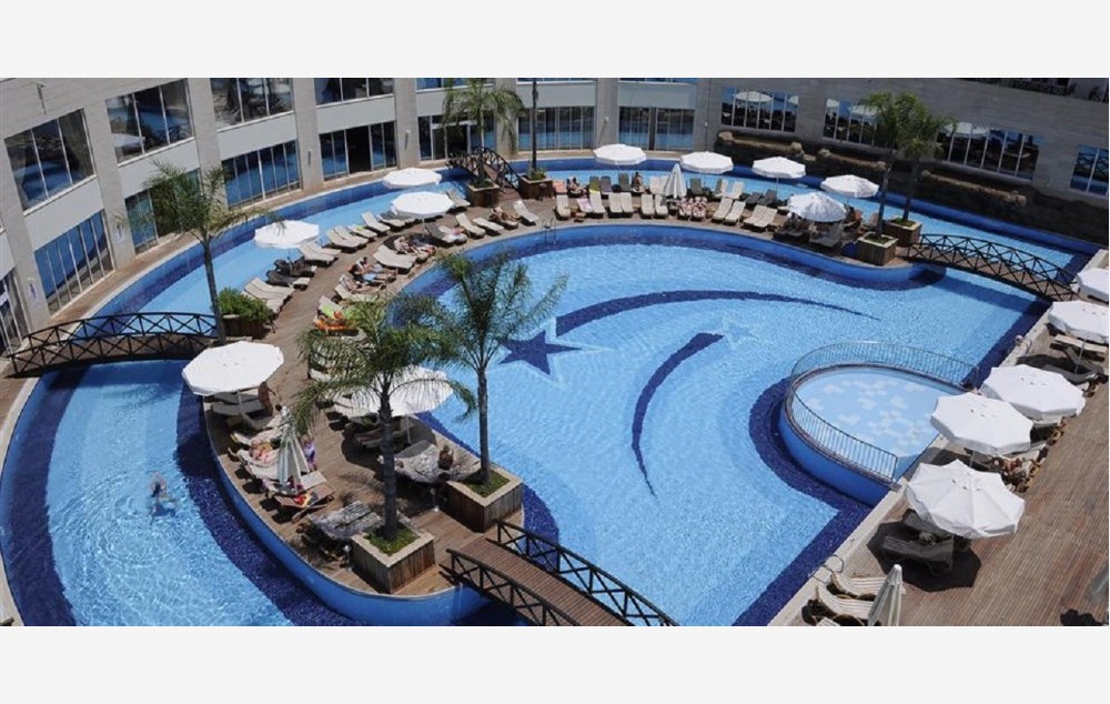 Hotelski sadržaj: Hotel poseduje glavni restoran, 2 a la carte restorana (turski i riblji-korišćenje jednog besplatno u toku boravka uz obaveznu rezervaciju), 2 bara, spoljašnji i unutrašnji bazen za odrasle i decu, večernju animaciju, dečiji klub 8za decu od 4-12 godina), dečija igraonica, mini disko, tursko kupatilo, sauna, masaže, fitness, aerobic, stoni tenis, bilijar, boćanje, pikado, wi fi.