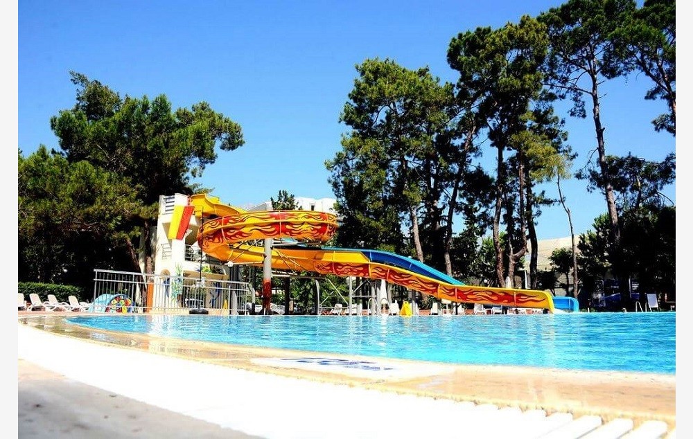 Hotelski sadržaj: Recepcija, glavni restoran, a la carte restoran, bar pored bazena, bar na plaži, bazen za odrasle, dečiji bazen, dva tobogana, dečije igralište, dnevnu animaciju, večernji mini disko, fitness, tursko kupatilo, saunu, stoni tenis, bilijar, wi fi se doplaćuje.