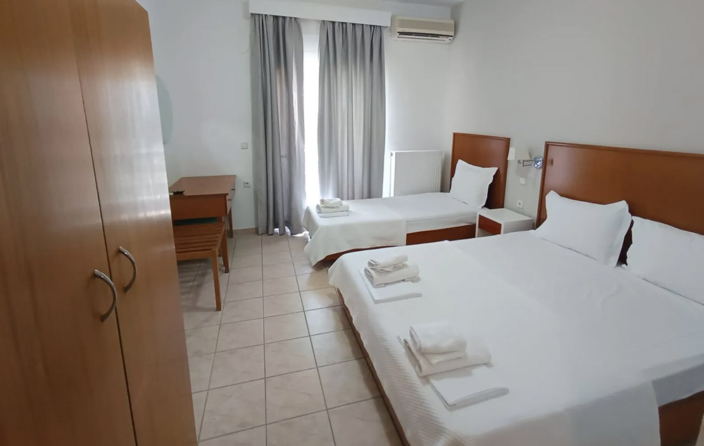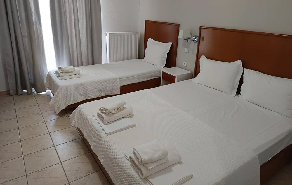 LOKACIJA:Stavros Beach Hotel 3* je smešten u srcu Stavrosa, popularnog letovališta na severu Grčke. Nalazi se na samo 80 metara od plaže.Stavros Beach Hotel se sastoji od dve zgrade, zgrade A (renovirana zdraga) i B, koje se prostiru oko bazena hotela. Renoviran bazen 2022. godine. Zgrada A poseduje superior dvokrevetne-trokrevetne sobe, porodične sobe u prizemlju, junior apartmane sa pogledom na bazen. Standardne sobe hotela su sve u zgradi B.Sve sobe su opremljene TV-om, frižiderom i A/C(klima uključena u cenu), balkon( neke sa pogledom na bazen,a neke sa pogledom na vrt), Wi-fi
