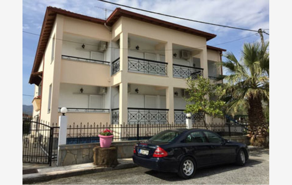 Opis: Poseduje komforna dvokrevetna, trokrevetna i četvorokrevetna studija, smeštena u prizemlju i na prvom spratu. Svaka od smeštajnih jedinica ima opremljen kuhinjski deo, kupatilo/wc, terasu, TV, WiFi internet i klima uređaj (uključena u cenu aranžmana). Vila ima recepciju, a ispred vile je lepo uređen travnjak sa baštenskim garniturama za sedenje, kao i roštilj, koji je gostima na raspolaganju.