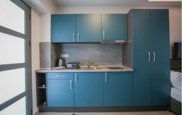 Opis: Poseduje dvokrevetna studija koja su smeštena u prizemlju. Svaki od njih ima opremljen kuhinjski deo, kupatilo/wc, terasu, TV, WiFi internet i klima uređaj (uključen u cenu aranžmana). U neposrednoj blizini se nalaze supermarketi, pekare, restorani, kafići i ostali sadržaji.