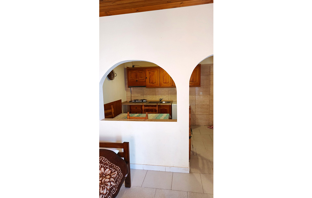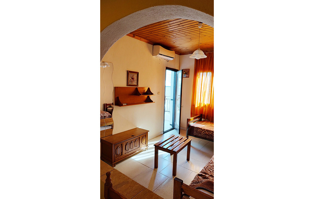 Manji dvokrevetni + 1 studiji (STD 1/2, STD 1/2+1) se nalaze u malo izdignutom prizemlju i na prvom spratu. Lepe i velike terase (sa garniturom za sedenje) gledaju ka vrtu. Studiji su manji, ali funkcionalni i u njima se pored standardnog ležaja, nalazi i prošireni ležaj (francuski ležaj po grčkim standardima-120 cm) na kojem može spavati jedan od roditelja sa detetom. Pored čajne kuhinje sa odgovarajućim posudjem i malim frižiderom (40 l sa komoricom za led) studio je opremljen TV-om, klima uredjajem (uz doplatu na licu mesta (opcija), 5 eur dnevno po studiju), wi – fi Iinternetom, ima malo kupatilo i lepu terasu sa garniturom za sedenje. Ležaljke i suncobrani oko bazena se ne naplaćuju. Studiji su ograničeni na maksimum dve odrasle osobe i dete dodvanaest godina (koje deli prošireni ležaj sa roditeljem). Veličina studija je cca 16 kvm + terasa.
