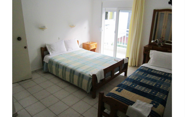 Četvorokrevetni i petokrevetni apartman (1/4 APP, 1/5 APP) se sastoj od ulaznog dela u kojem se nalazi kuhinja i manji francuski ležaj (francuski ležaj po grčkim standardima-120 cm) i spavaće sobe sa manjim francuskim ležajem (francuski ležaj po grčkim standardima-120 cm120 cm) i standardnim ležajem, terase sa garniturom za sedenje. Veličina apartmana je cca 35 kvm + terasa.