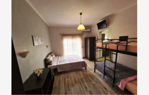 Opis: Smeštajni kapaciteti u našoj ponudi su dvokrevetna, trokrevetna i četvorokrevetna studija, kao i četvorokrevetni i petokrevetni apartmani, koji se nalaze u prizemlju, na prvom i drugom spratu, a svi imaju opremljen kuhinjski deo, kupatilo/wc, terasu, TV, WiFi internet i klima uređaj (uz doplatu na licu mesta od 6€ dnevno).