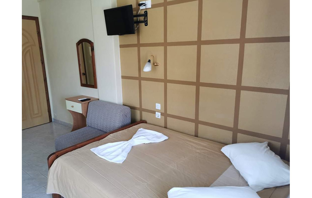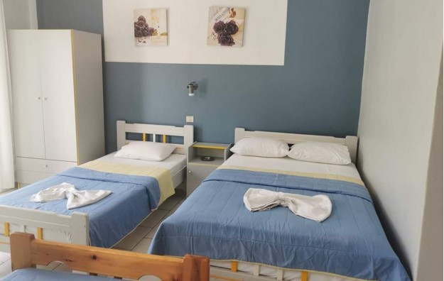 Opis: Vila Tasos u ponudi ima dvokrevetne, trokrevetne i četvorokrevetne studije na visokom prizemlju i drugom spratu. Sve smeštajne jedinice poseduju opremljen kuhinjski deo, kupatilo, terasu, TV, klima uređaj (uz doplatu na licu mesta od 7€ dnevno).