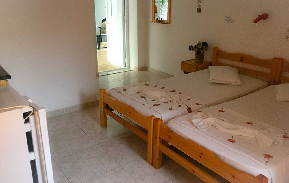 Opis: Vila raspolaže sa moderno opremljenim, dvokrevetnim studijima, koji se nalaze na prvom spratu. Svaka smeštajna jedinica ima kompletno opremljenu kuhinju, kupatilo/wc, terasu, TV, WiFi internet i klima uređaj (uz doplatu na licu mesta od 6€ dnevno).