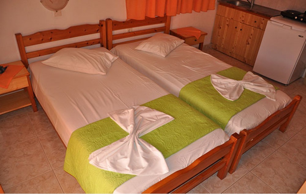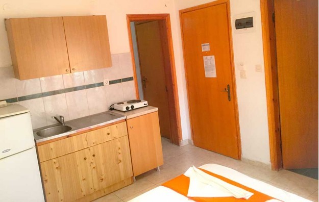 Opis: Smeštajne jedinice u našoj ponudi se nalaze u prizemlju i na prvom spratu, sve imaju opremljen kuhinjski deo, kupatilo/wc, terasu, SAT TV, WiFi internet i klima uređaj (uz doplatu na licu mesta, od 6€ dnevno). Svaki dvokrevetni studio ima dva odvojena kreveta, a svaki četvorokrevetni ima dva odvojena kreveta i krevet na sprat.