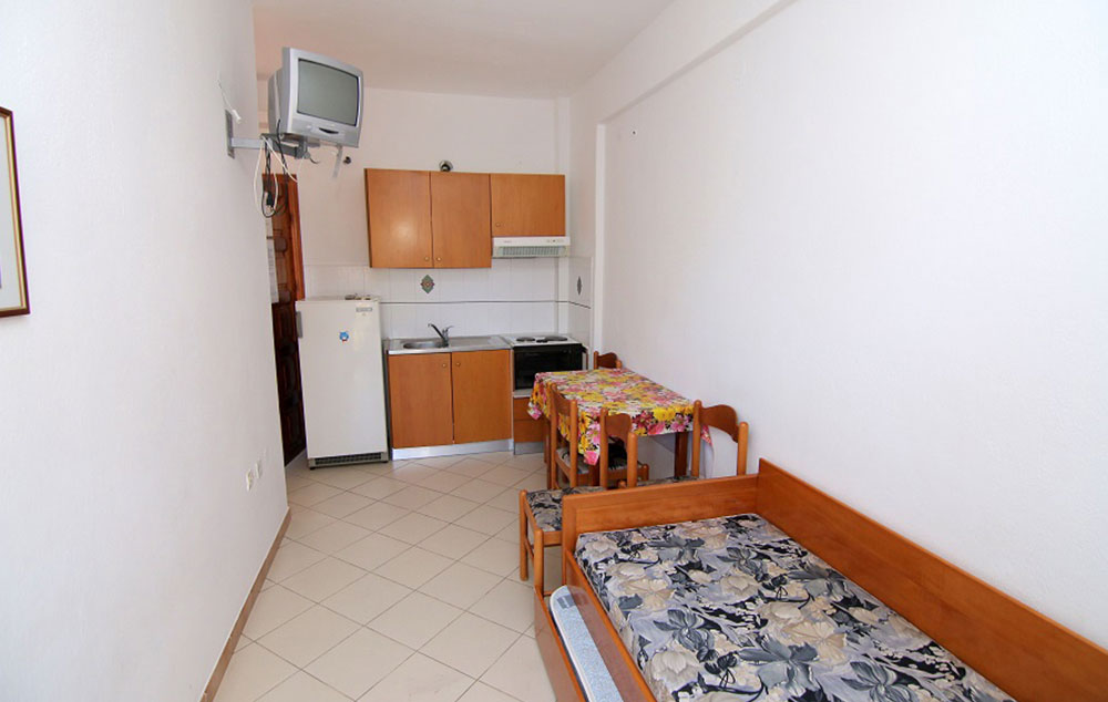 • Studio je smeštajna jedinica koja se sastoji od kupatila (tuš/WC) i jedne prostorije u kojoj se nalazi naznačeni broj ležaja i kuhinjski deo koji je opremljen rešoom, frižiderom i osnovnim posuđem