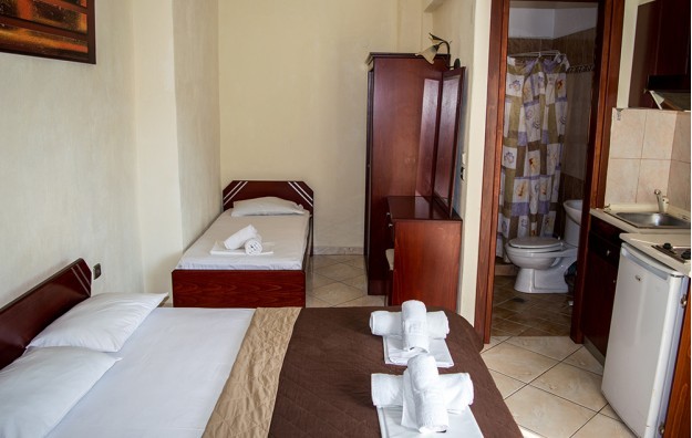 U našoj ponudi su dvokrevetna I trokrevetna studija u vrtu, desno od bazena, u spuštenom prizemlju, sa uslugom dnevnog čišćenja studija. U neposredoj blizini hotela se nalazi javni, besplatni parking.