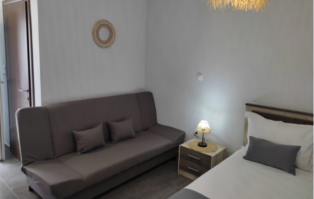 Opis: Vila se sastoji od studija na izdignutom prizemlju i prvom spratu, sa pogledom na more ili baštu. Studiji su opremljeni TV – om, wi - fi Internetom i klima uredjajem (uz doplatu na licu mesta (opcija, minimum na 5 noći), 5 eur dnevno po studiju).Dvokrevetni i trokrevetni + 1 studio na izdignutom prizemlju ima francuski ležaj i prošireni (120 cm) i nešto je veće kvadrature.Mali dvokrevetni, trokrevetni i četvorokrevetni studiji na izdignutom prizemlju (1/2 STD PROMO, 1/3 STD PROMO, 1/4 STD PROMO) su sa francuskim ležajem i krevetima na sprat. U njima mogu boraviti dve do četiri osobe (pogledati cenovnik). Pored malog kupatila, imaju kuhinjsku nišu, mali orman i lepu terasu sa pogledom na more. Veličina studija je cca 12 - 15 kvm + terasa.Dvokrevetni i trokrevetni + 1 studio na izdignutom prizemlju (1/2 STD PROMO, 1/3 STD PROMO, 1/3+1 STD PROMO) ima francuski ležaj i prošireni ležaj-francuski ležaj po grčkim standardima (120 cm) i nešto je veće kvadrature.U studije u prizemlju se ulazi kroz terasu i nemaju prozor, već samo uski vertikalni svetlarnik pored (u visini) vrata i mali u vratima. Boj osoba koji može boraviti u studijima na prizemlju je ograničen na dvoje odraslih i dvoje dece do 12 godina.Dvokrevetni+1 studiji (1/2 STD PM, 1/2+1 STD PM) se nalaze na prvom spratu i pored kuhinjskog dela sadrže standardni ležaj i prošireni ležaj-francuski ležaj po grčkim standardima (120 cm), kupatilo i terasu sa garniturom za sedenje i pogledom na more.Trokrevetni+1 studiji se nalaze na prvom spratu (1/3 STD PM, 1/3+1 STD PM) i pored kuhinjskog dela sadrže francuski ležaj i prošireni ležaj-francuski ležaj po grčkim standardima (120 cm), kupatilo i terasu sa garniturom za sedenje i pogledom na more.Dvokrevetni, trokrevetni i četvorokrevetni studiji na prvom spratu (1/2 STD PB, 1/3 STD PB, 1/4 STD PB) sadže kuhinjski deo, deo sa francuskim i jedna ili dva standardna ležaja, kupatilo i terasu sa garniturom za sedenje i pogledom na baštu. Veličina studija je cca 18 - 20 kvm + terasa.Trokrevetni i četvorokrevetni studiji na prvom spratu (1/3 STD PM, 1/4 STD PM) imaju francuski i krevete na sprat i terasu sa garniturom za sedenje sa pogledom na more. Veličina studija je cca 21 - 23kvm + terasa. Vila Eftihia je B kategorije, nema peškire i ima mogućnost parkinga na ulici pored vile.