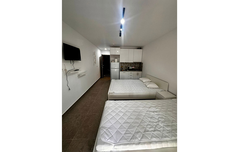 Studio je smeštajna jedinica koja se sastoji od kupatila (tuš/WC) i jedne prostorije u kojoj se nalazi naznačeni broj ležaja i kuhinjski deo koji je opremljen rešoom, frižiderom i osnovnim posuđem
