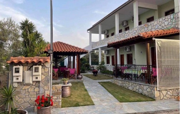 Opis: Poseduje studija namenjena za smeštaj dve do četiri osobe, smeštena u prizemlju i na prvom spratu. Svaka od smeštajnih jedinica ima po dva francuska ležaja po grckim standardima (širine 1.20 ), opremljen kuhinjski deo, kupatilo/wc, terasu, TV,WIFI, A/C, čije se korišćenje naplaćuje 6€ po danu.