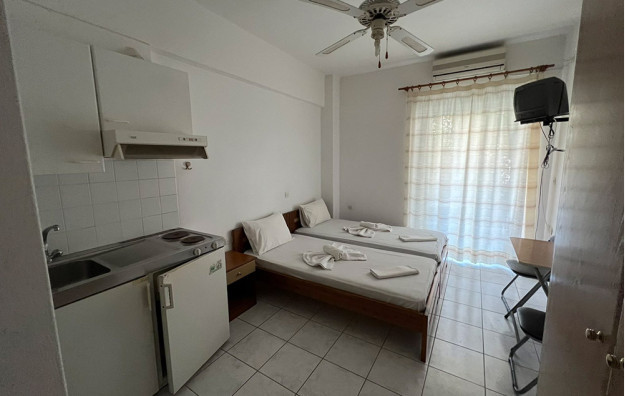 Opis:Na plaži se nalaze po dve ležaljke i suncobran za svaki studio koji su uračunati u cenu. Vila Spitaki se sastoji od studija na prizemlju sa pogledom na dvorište u hladovini loze, u kojem se nalazi veliki zajednički roštilj sa stolovima i stolicama. Studiji su opremljeni klima uredjajem (uračunat u cenu), bežičnim internetom i TV - om. Dvokrevetni, trokrevetni i trokrevetni + 1 studiji sadrže opremljeni kuhinjski deo, francuski ili francuski i standardni ležaj, kao i fotelju na otvaranje, kupatilo i lepu veliku terasu/dvorište sa garniturom za sedenje. Veličina studija je cca 22 - 24 kvm + terasa. Četvorokrevetni studio ima dodatni standardni ležaj i lepu veliku neogradjenu terasu sa garniturom za sedenje. Veličina apartmana je cca 26 kvm + terasa. Vila Spitaki je B+ kategorije, ima peškire i ima mogućnost sopstvenog parkinga. Preporučujemo putnicima koji putuju sopstvenim automobilom.