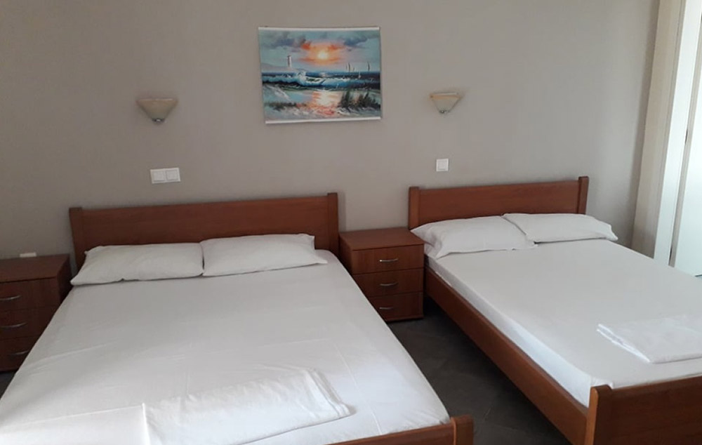 Opis: Nalazi se na glavnom putu kroz Nea Vrasnu, a preko puta velikih super marketa. Poseduje dvokrevetne, trokrevetne, četvorokrevetne i petokrevetne studije, kao i četvorokrevetne i petokrevetne apartmane koji se nalaze u prizemlju, na prvom spratu ili drugom spratu. Smeštajne jedinice u prizemlju su renovirane. Svaka od njih ima opremljen kuhinjski deo, kupatilo/wc, terasu, TV, WiFi internet i klima uređaj (uz doplatu na licu mesta od 5€ dnevno).