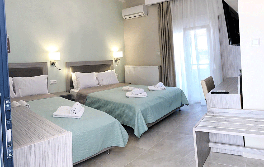 Lokacija: Hotel se nalazi u novom delu Sartija, iznad magistrale. Od najlepše plaže u Sartiju, Sarti Beach, udaljen je 250m. Ulazak u more u tom delu je postepen, pa je svakako pogodan i za porodice sa malom decom.