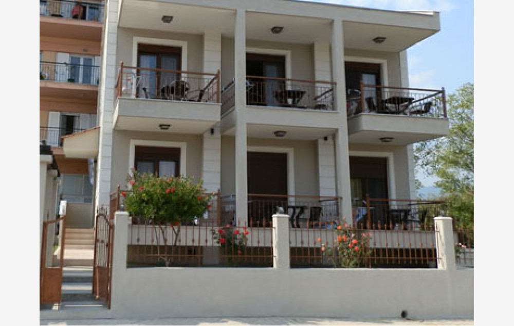 Opis: Vila je kvalitetno i moderno opremljena. Smeštajni kapaciteti u našoj ponudi su dvokrevetna i trokrevetna studija, koji se nalaze u prizemlju i četvorokrevetni mezoneti, koji su na prvom spratu. Svi imaju opremljen kuhinjski deo, kupatilo/wc, terasu, TV, WiFi internet i klima uređaj (uz doplatu na licu mesta od 7€ dnevno, odnosno u mezonetama dva klima uređaja od 14€ dnevno).