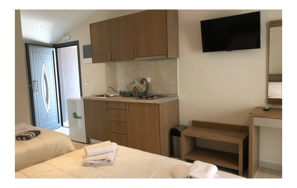 Opis: Vila Eleni je nova vila, a raspolaže trokrevetnim i četvorokrevetnim studijima, kao i četvorokrevetnim apartmanima, koji se nalaze na prvom spratu. Svi studiji/apartmani imaju opremljen kuhinjski deo, kupatilo/wc, terasu, TV, WiFi internet i klima uređaj (uz doplatu na licu mesta od 6€ dnevno).